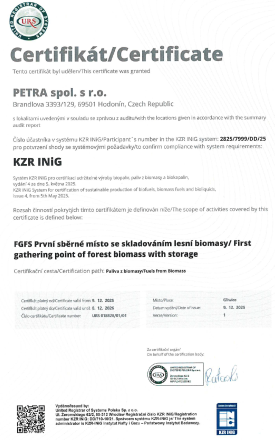 Vedení společnosti dále přijímá závazky vyplývající z požadavků platných technických dokumentů spotřebitelského řetězce dřeva v rámci pravidel PEFC a podporuje trvale udržitelné hospodaření v lesích v rámci pravidel PEFC.